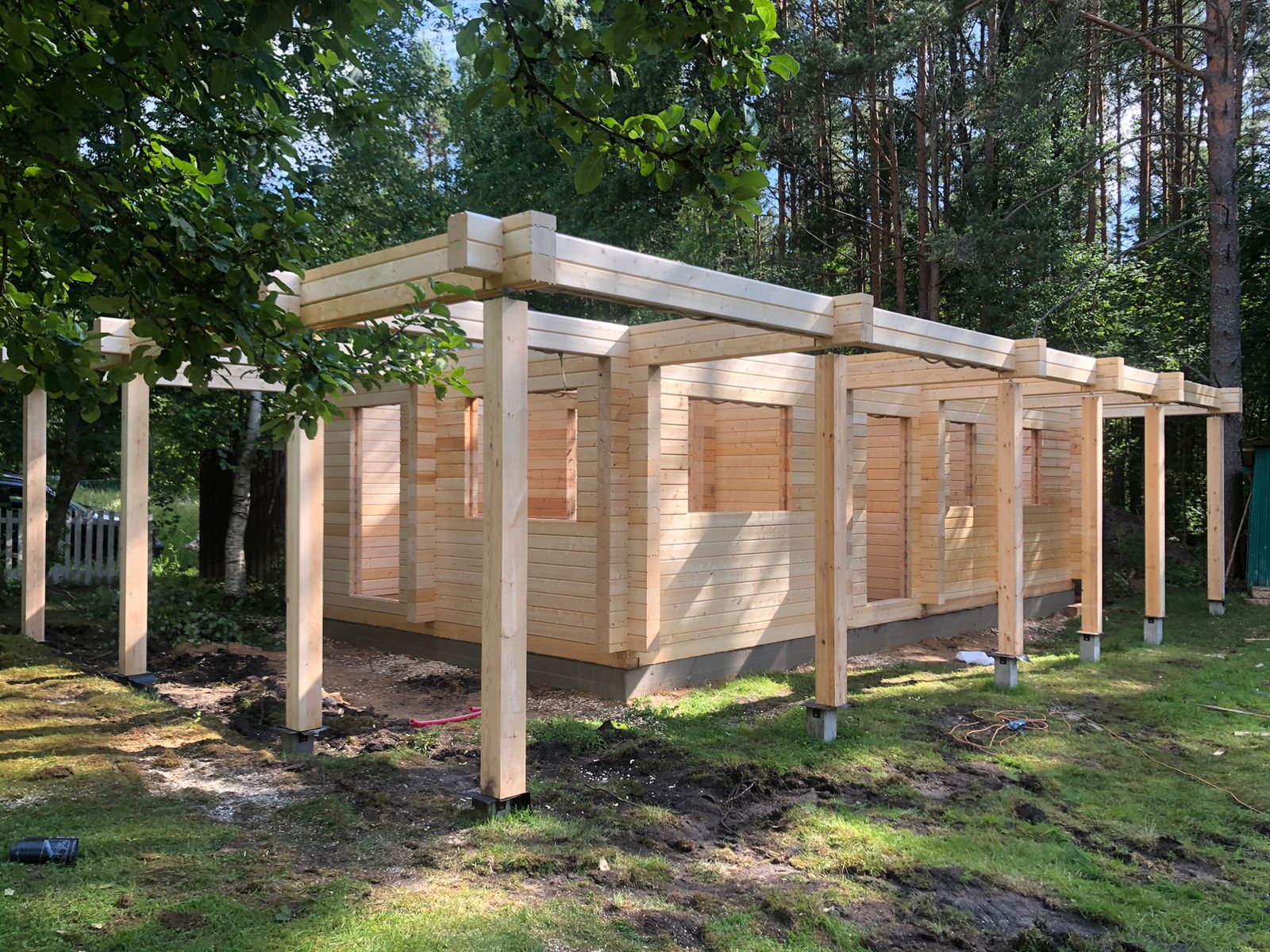 • Срок строительства – возводится немного дольше брусовых вариантов